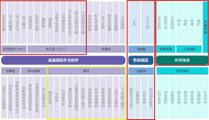 图7:人形机器人产业链全景图(黄色框代表卧龙可覆盖领域,黄色框代表智元可覆盖领域)
