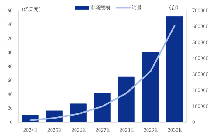 产业化加速,未来市场增长潜力巨大。海外方面,特斯拉预计2025年生产5000台Optimus;Figure AI首条生产线预计年产能1.2万台。国内方面落地更快,宇树科技已在京东上架消费级G1及工业级H1机器人并迅速售罄;智元机器人24年12月即开启商用量产,25年1月1000台下线。一般来说,人形机器人量产有10、100万台两个重要节点,前者目标在于验证技术可行性而非成本控制,后者标志着大规模量产阶段的开启,GGII预测2024-2030年全球人形机器人市场规模CAGR超56%,销量将增长至60.6万台。此外,在与智元合作协议中提及的工业清洗机器人同样增速可观,Wiseguyreport预测2024-2032年全球商用清洗机器人CAGR达22.3%,市场规模扩大至109亿美元。