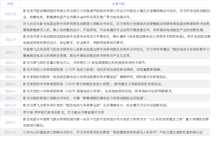 表8:卧龙电驱稳步推进低空战略,积极开展业务合作