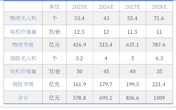 公司布局航空电机已久,制定“3+1”低空战略。公司最早于2019年布局成立了电动航空研发中心,专注于航空电驱系统开发,制定了“3+1”战略,即“小、中、大”三大战略等级及1个民航适航标准:1)小功率产品(<30kW,主要应用无人机及eVTOL)现已形成4kW,6kW,9kW,12kW,15kW,30kW系列产品。最新进展方面,2024年底公司与山河星航签订战略合作协议,双方共同研发的创新型“高层建筑消防系留无人机系列”产品已通过国家权威机构认证,我们初步测算全球消防无人机市场规模2028年有望达到221.4亿元。2)中功率产品(50kW~175kW,主要应用eVTOL);积极对接沃飞、商飞等头部eVTOL企业,其中沃飞2025年2月首席市场官表示,AE200年内将进入载人飞行试验阶段,预计2026年下半年完成TC取证,27年底迎来量产运行。3)大功率产品(百千瓦级以上,主要应用19或30座电动航空场景)。