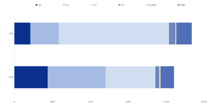 图17:按效率水平划分的全球低压电机出货量(单位:千台)