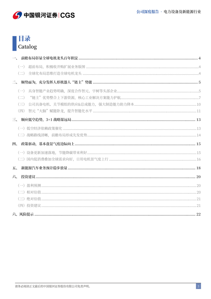 前瞻布局彰显全球电机龙头百年积淀。公司管理层深谙电机行业发展逻辑,以电机电驱技术为核,已前瞻布局机器人、低空等领域,同时更聚焦主业。公司坚持全球化战略,目前公司已拥有多个全球百年品牌,2018年通过收购在墨西哥布局产能并于2023年扩建日用电机产线,在当前关税政策加码/反复形势下,预计营收对美敞口仅2%左右,未来或拥有巨大的价格优势。