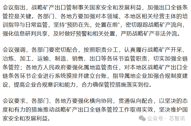从此次会议的是内容来看,国内对于稀土等战略矿产资源的出口管制并不会放松,反而会进一步趋严。