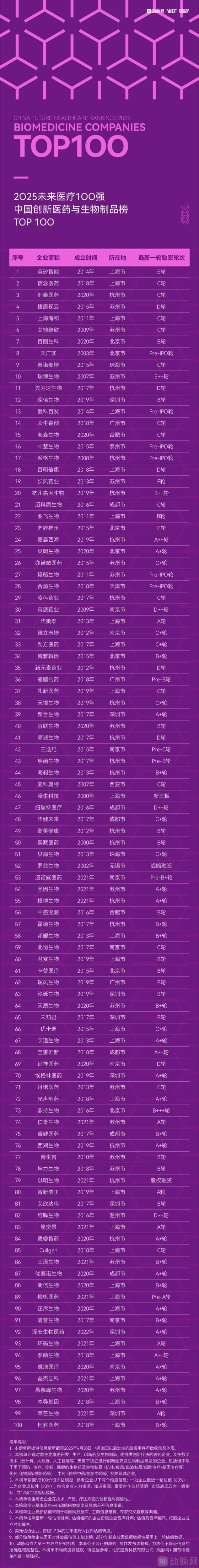动脉网未来医疗100强每年都会根据当年的未来医疗100强榜推出百强企业成长性报告。在2025年未来医疗100强大会召开之际,再次推出《2025未来医疗100强企业成长性分析报告》,全面分析中国创新器械与智能制造榜TOP100、中国创新医药与生物制品榜TOP100、中国医疗与健康创新服务榜TOP100、中国医疗健康产业链服务榜TOP100四大主榜企业相关数据。我们期望借助于对每年未来医疗100强榜上榜企业的多维分析,总结企业成长规律和产业变化趋势,为医疗健康企业和创业者提供参考借鉴。