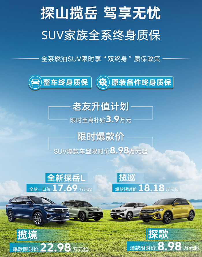 在汽车消费领域,“终身质保”不是新鲜词,但往往暗藏玄机。或仅限特定部件,或设置严苛免责条款,被用户调侃为“质保套路比山路还弯”。一汽-大众推出“双终身”质保政策,政策覆盖揽境、揽巡、探岳等全系燃油SUV车型,均可享受“整车终身质保+原装备件终身质保”权益。