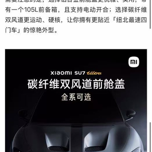 小米对SU7 Ultra对碳纤维双风道前舱盖的官方介绍