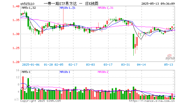 一带一路ETF易方达(515110)业绩比较基准为中证国企一带一路指数收益率,管理人为易方达基金管理有限公司,基金经理为刘树荣,成立(2019-11-06)以来回报为32.87%,近一个月回报为2.37%。