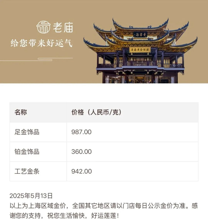 受此影响,13日国内金饰价格普遍下跌,单克纷纷跌至千元以下。周生生金饰价格为991元/克,老庙黄金为987元/克,老凤祥为995元/克,均较前一日下跌7-16元不等。