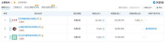 天眼查显示,五芳斋集团股份有限公司持股浙江五芳斋实业股份有限公司32.14%。