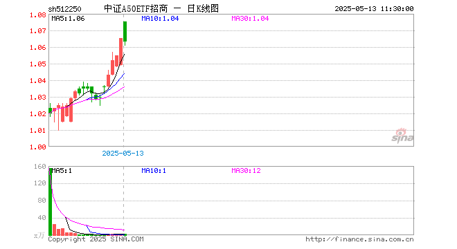 5月13日,截止午间收盘,中证A50ETF招商(512250)跌0.19%,报1.063元,成交额187.50万元。中证A50ETF招商(512250)重仓股方面,贵州茅台截止午盘跌0.92%,宁德时代跌0.19%,中国平安跌0.63%,招商银行涨0.91%,长江电力涨0.47%,美的集团涨0.47%,中信证券跌0.91%,紫金矿业跌0.40%,恒瑞医药涨1.10%,比亚迪跌0.97%。
