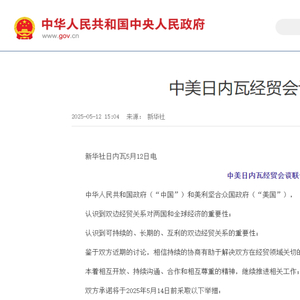 5月12日,《中美日内瓦经贸会谈联合声明》发布。商务部新闻发言人就此发表谈话。