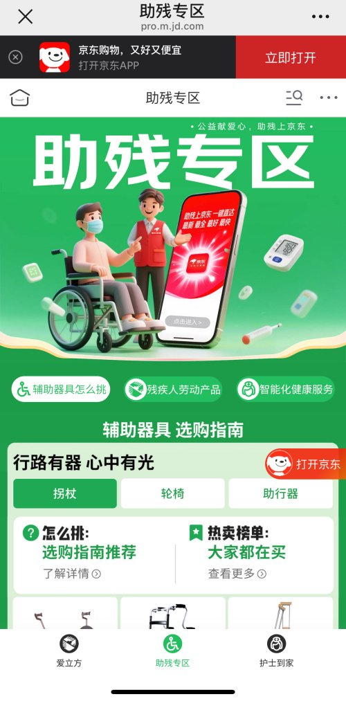据记者了解,这个充满温度的“助残专区”,不仅串联起残疾人辅助器具、残疾人劳动产品、智能化健康服务三大核心板块,更承载着京东通过商业力量推动社会公平的实践。