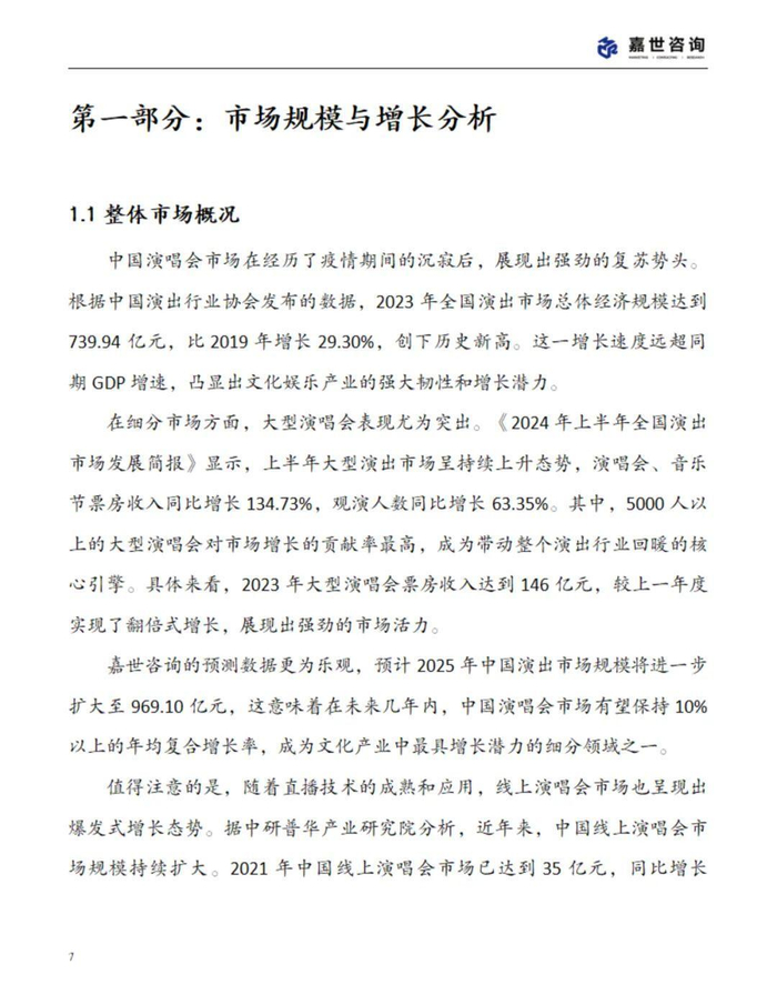 报告指出,2023年全国演出市场总体经济规模达739.94亿元,预计2025年将增至969.10亿元。市场增长得益于居民收入增长、文化消费升级、技术创新及政策支持。线上演唱会市场也呈现爆发式增长,2021年规模达35亿元,预计未来几年复合年增长率超20%。报告分析了演唱会产业链结构,包括上游内容制作、中游演唱会筹办和下游演出期间消费三个核心环节。商业模式创新方面,跨界合作、线上线下协同发展、内容创新与技术赋能成为重要趋势。