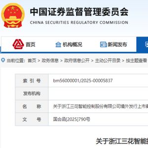 A股上市公司、来自浙江绍兴的三花智控(002050.SZ),获境外发行上市备案通知书。2025年5月12日,中国证监会国际司发布《关于浙江三花智能控制股份有限公司境外发行上市备案通知书》(国合函[2025]790号)。