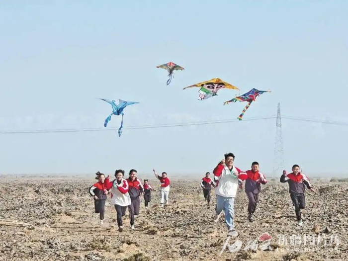 周末和节假日,谢依特小学戍边支教西部计划志愿者服务队带着孩子们开展各种文体活动。这是4月中旬志愿者带着孩子们放风筝。谢依特小学供图