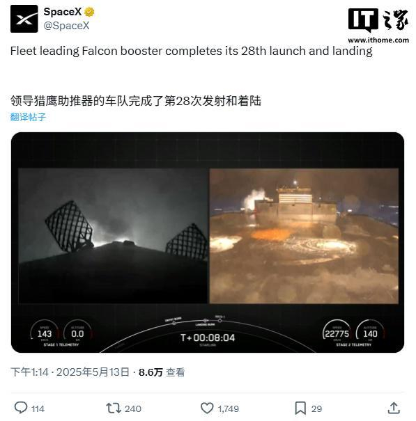 SpaceX 第一枚 28 手猎鹰 9 号诞生,刷新火箭复用次数纪录