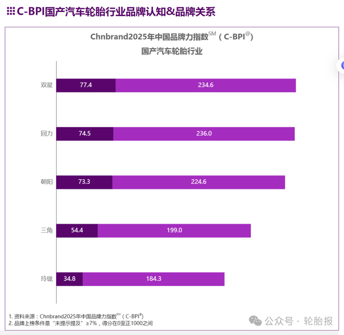 在本次发布的2025年C-BPI榜单中,有五家中国轮胎品牌凭借出色的市场表现和消费者认可度强势上榜,它们分别是:双星、回力、朝阳、三角、玲珑。