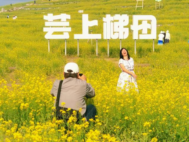 金灿灿的梯田层层叠叠漫向天际,微风中的花浪裹挟着淡淡香气扑面而来,实属一场视觉盛宴。