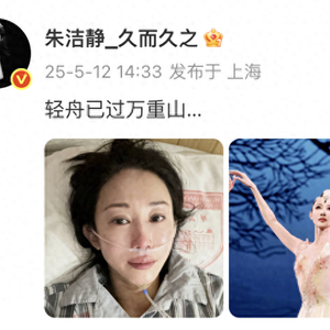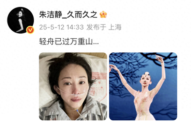 当天,知名舞蹈家、上海歌舞团荣典首席演员朱洁静,在个人社交平台晒出躺在病床上的流泪照与舞台上的舞蹈照,并配文:轻舟已过万重山。