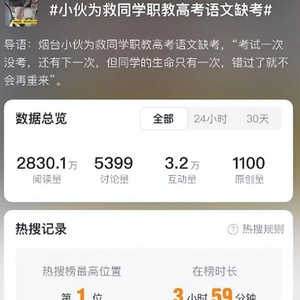 5月13日,词条#小伙为救同学职教高考语文缺考#一度登上微博热搜第一,引发网友热议。