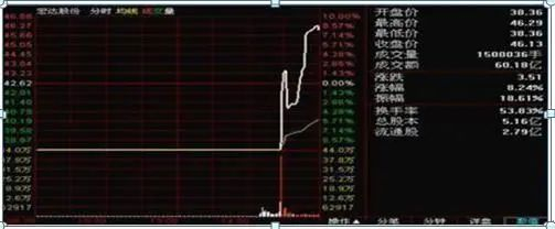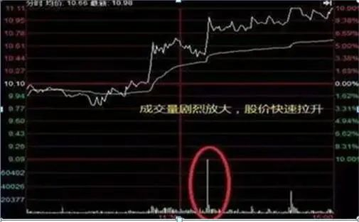 第二阶段:“对倒”拉升,拔高股价,成交量迅速放大!