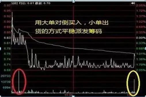 主力会如何操作呢?会让股价在一个区间反复震荡,或者缓慢下跌,同时主力还会才有大单拆小单的方法,迷惑投资者,让数据呈现净流入,吸引抄底盘跟风,达到最终的派发筹码目的。