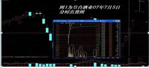 皇台酒业(000995):皇台酒业在出货前股价已有了较大涨幅,2007年7月5日股价因连续上涨停牌半小时,上午10:30分开始交易,股价平开低走,经短暂回落后迅速拨高,量能急剧放大,主力在盘中不断用三位数、四位数的大单来进行对倒,以吸引跟风盘买进。10:39分,股价封于涨停,同时也吸引了大量的跟风盘排队等着进入。大量的买盘给主力的出货提供了极大的帮助,主力毫不犹豫地将筹码“让”给了投资者。由于主力手中筹码相对较多,为了吸引人气,主力再次将股价拉起,待市场人气再度聚集到一定程度时主力再次慷慨地将手中筹码又分给了积极买进的投资者。