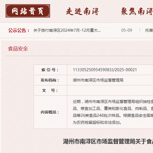 浙江省湖州市南浔区市场监督管理局关于食品安全监督抽检结果的公告(2025年第2期)