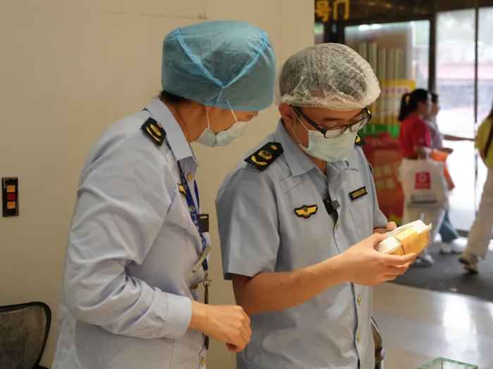 行动期间,执法人员前往辖区内热门糕点店、超市、便利店等场所进行抽样检验,共抽检现场制作或销售的糕点、凉果、乳制品、饮料等样品45批次。