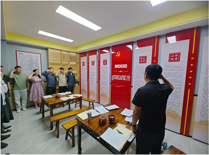 警示教育专题片观看结束后,镇长赵琪带领全体人员庄严宣誓,面向鲜红党旗,重温入党誓词。“我志愿加入中国共产党……”铿锵誓言响彻会场,字字千钧激荡初心。赵琪强调,入党誓词是党员对党和人民的终身承诺,年轻干部要以誓词为镜,常思“入党为什么、在党做什么、为党留什么”,在重温誓言中校准方向、砥砺本色,将忠诚干净担当的政治品格转化为拒腐防变的行动自觉,永葆共产党人清正廉洁的政治底色。
