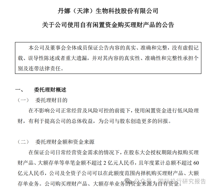 根据招股书,2025 年,丹娜生物计划使用不超过 60 亿元的闲置自有资金进行现金管理,投资安全性高、流动性好、有保本约定的理财产品或存款类产品。与之形成鲜明对比的是,此次 IPO,丹娜生物计划募集资金仅 1.368 亿元,用于总部基地建设项目 (1 亿元) 和新产品研发项目 (3680 万元)。