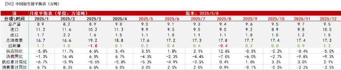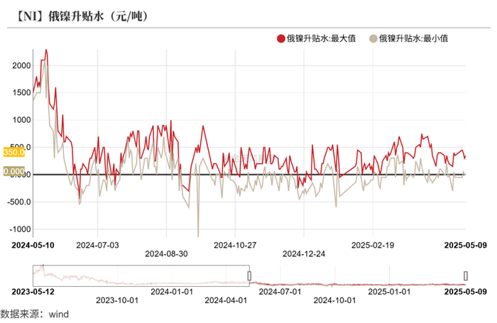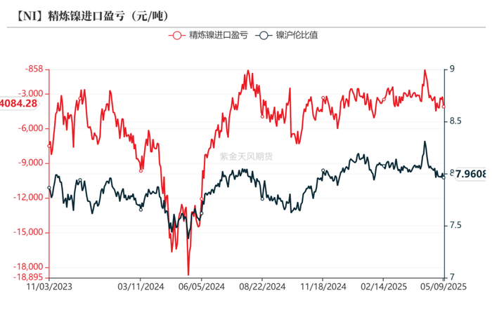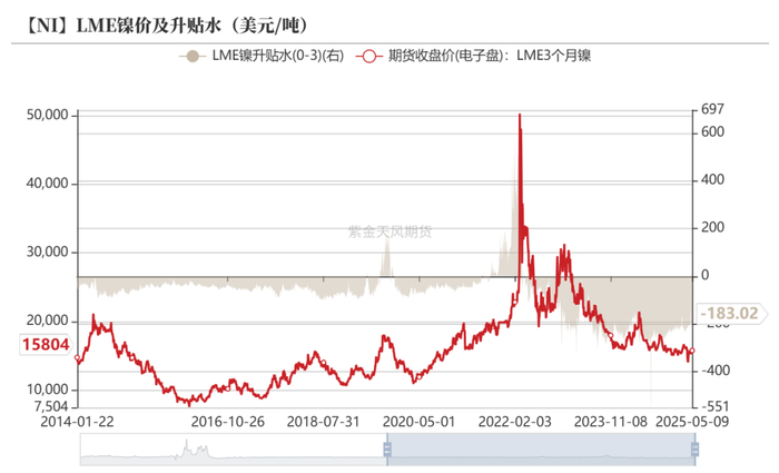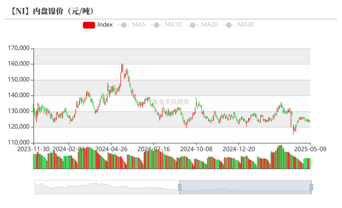 5月9日,市场消息称“菲律宾政府拟于2025年6月起实施禁止原矿出口的法案”,受此影响沪镍夜盘涨幅达2.05%。该事件在2025年2月份即引发过讨论,即使相关法案正式签署成功,或也将在五年后生效,对盘面的影响更多来自情绪方面。