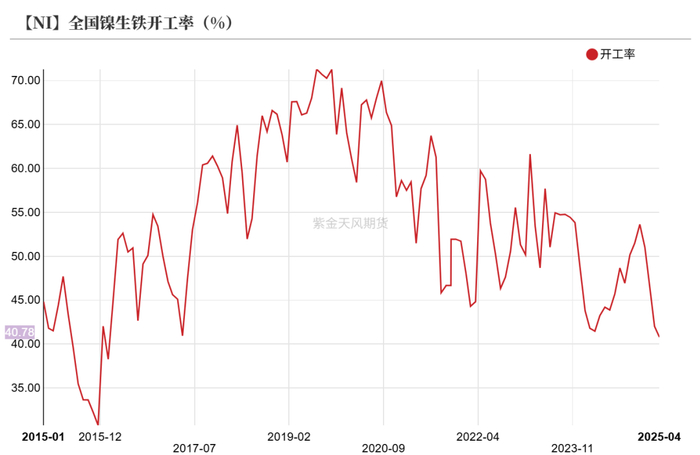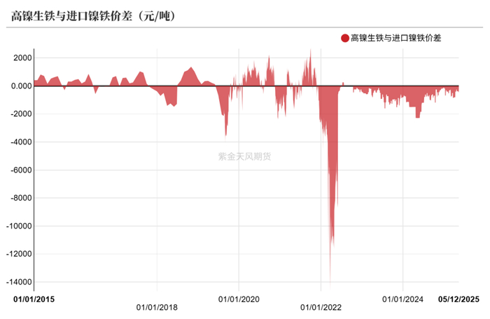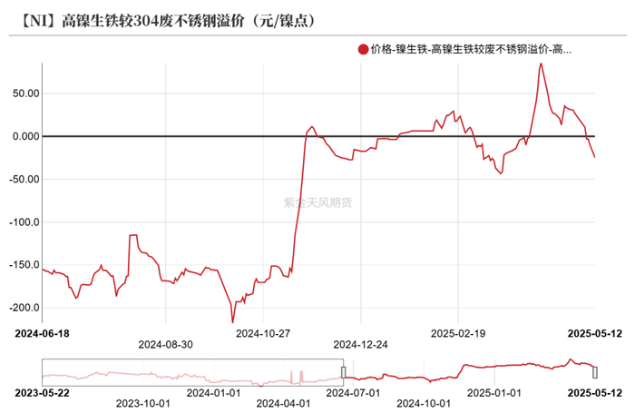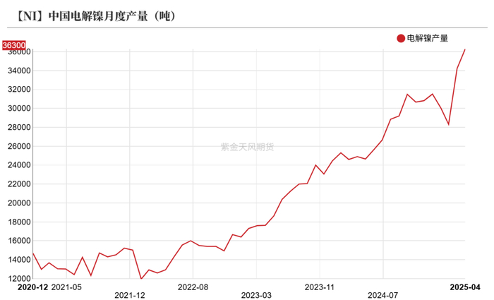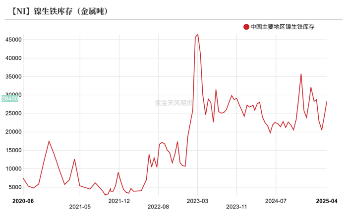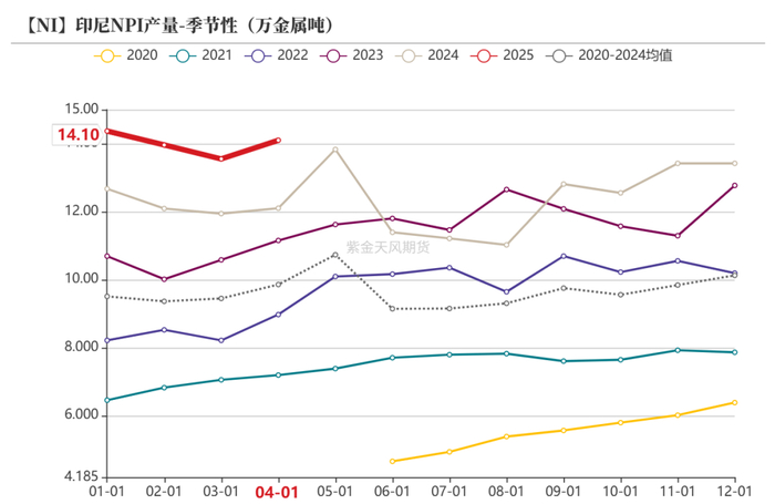 截至2025年4月,印尼镍生铁产量环比增加0.17万吨至14.3万吨,环比增1.19%。