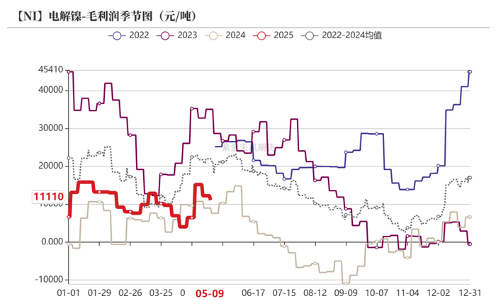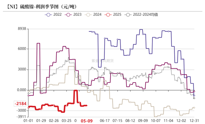 截至5月12日,MHP、高冰镍、黄渣生产硫酸镍利润率环比上周分别+0.3%、+0.3%、-1.19%至-1.5%、2.1%、-2.04%。