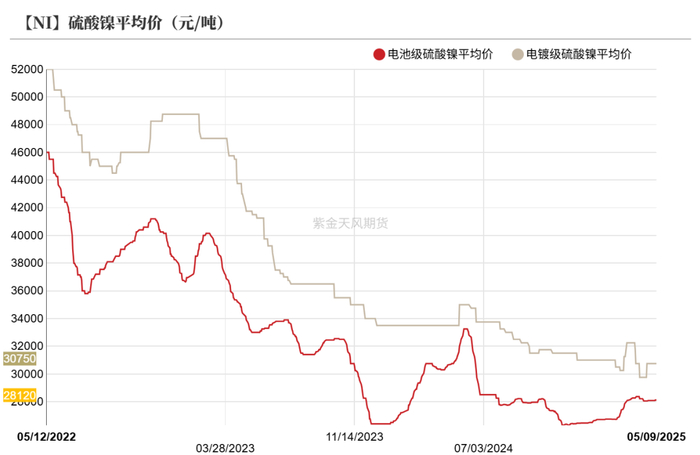 截至5月9日,电池级硫酸镍均价环比上周+35元/吨至28115元/吨,环比增0.12%;电镀级硫酸镍均价环比持平于30750元/吨。电池级硫酸镍较一级镍板溢价环比+509.09元/吨至4020.45元/吨。