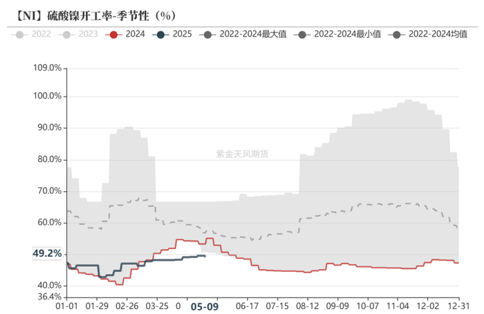 上周硫酸镍周度产量环比减少320吨至3.13万吨,环比减1.01%;硫酸镍装置开工率环比减少0.5个百分点至49.15%。