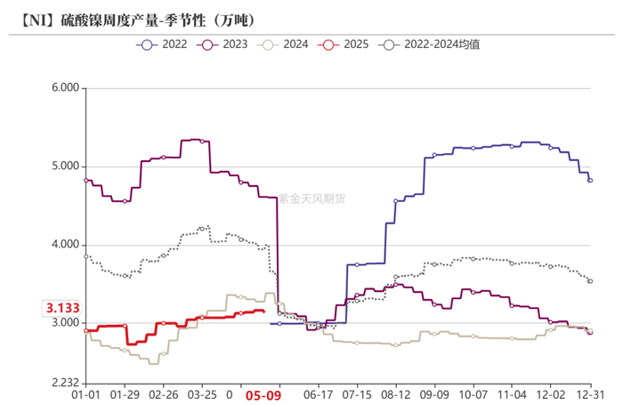 硫酸镍产量:偏多上周硫酸镍周度产量环比减少320吨至3.13万吨,环比减1.01%。