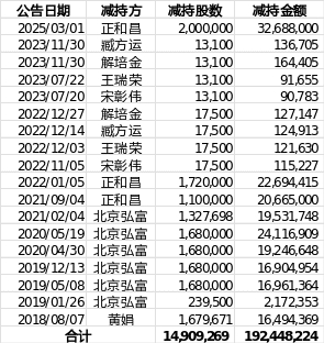 惠发食品于2017年6月13日在上证主板IPO,从2018年6月14日上市满一年的第一天起,就迎来了小非的首次减持。据估值之家统计,截止到2025年5月12日,除实际控制人及其一致行动人外,仅针对发布过公告的小非减持,累计套现金额约1.92亿元,按惠发食品2025年5月12日收盘市值22亿计算,仅小非套现金额就已经达到了公司市值的8.72%,接近10%。