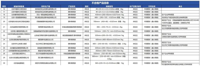 质检资讯|北京市塑料购物袋产品质量监督抽检公告,30批次不合格