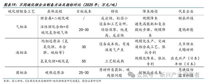 3. 气相法:国内、国际专利和产业化布局较少,但具有显著纯度优势。如三井金属(日本)气相法制硫化锂专利产品纯度可稳定高于99.9%,在行业处于领先地位,但由于成本较高尚未实现产业化。