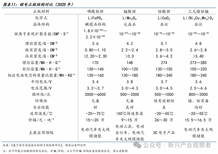 全新层状结构:公司在世界范围内,首创定向掺杂工艺,打破原有的简单包覆等路径,将锂离子嵌进去,生成更稳固、层间距更宽的全新结构锂电正极材料,有利于更高能量密度电池的研发。从图表10可以看出,层状结构在密度、容量、能量方面较橄榄石、尖晶石结构具有显著优势,橄榄石结构为三维正交晶系,锂离子仅能沿一维通道扩散,限制其倍率性能;尖晶石结构为立方晶系,高温下容量衰减显著。NL材料更宽的层状结构在增强优势的同时还能进一步提升耐高压性、稳定性,及充放电速率等:1.更宽的层状结构可以释放出更多的锂离子,同时可以承受更高的电压,能使能量密度提升10%~15%以上;2.其结构比较稳定,层间距更宽,锂离子脱放过程中,形变很小,可以更好地平衡膨胀力度,减少颗粒粉碎风险,提升安全性;3.较宽的层间距使得锂离子传输速度加快,使得充放电速率的动力学性能能够提高1.5倍。