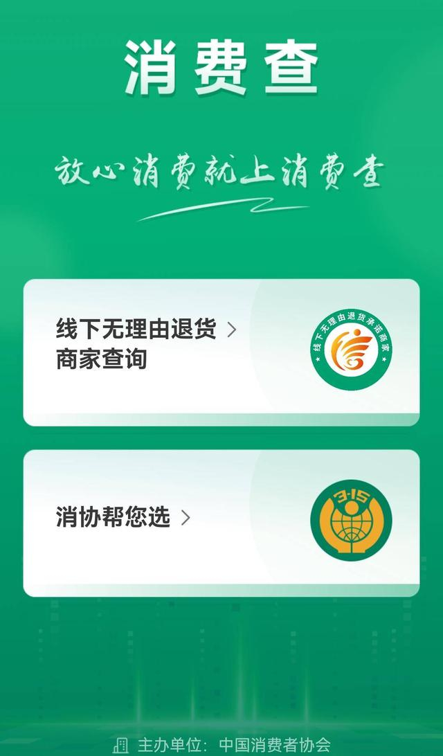 扬子晚报网(记者 马燕)5月13日,记者从中消协官网获悉,近日,由市场监管总局支持指导、中国消费者协会开发的线下无理由退货商家查询平台——“消费查”上线试运行。消费者足不出户,即可便捷、简单、一站式查询各地线下无理由退货商家信息。