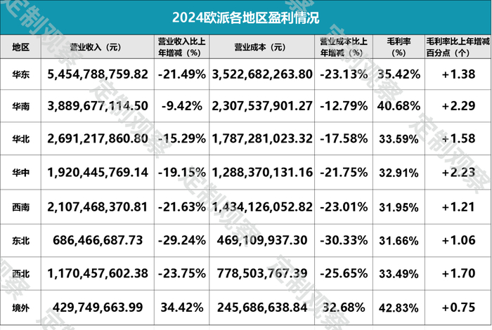 欧派家居2024年业绩承压,背后是各营收板块纷纷陷入低迷态势。
