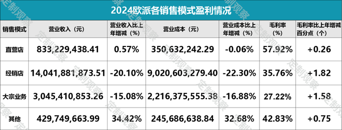作为核心销售模式的经销店与大宗业务陷入增长瓶颈,而直营体系展现出较强韧性,以8.33亿元的营收实现0.57%的微幅增长,成为业绩版图中难得的亮点。