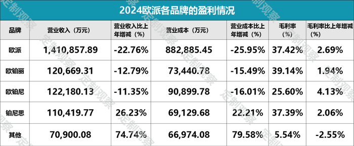 综合来看,从产品线到渠道端,各业务板块均呈现下行趋势,使得2024年欧派家居业绩增长受阻,经营挑战进一步加剧。