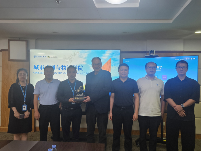 王宏楠副教授表示:通过校企协同驱动的专业建设,学院高度重视产教融合,校企协同开展专业建设、人才培养。通过共建产业学院、特色班、校企合作班、校内校外联合实践基地等形式,充分共享办学资源,助力校企协同育人。创新实践导向的人才培养,学院秉承实践导向的人才培养,融合创新链与产业链打造“一专业一特色社团”,坚持赛训结合、学用一体,助力创新实践育人。产业应用引领的科技研发,鼓励教师围绕相近方向或交叉融合构建PI团队开展面向产业应用的科技研发和成果转化,重点以交通、车辆、物流及其运控管理、装备智能化为方向,推动“AI+”在城市交通与物流中的应用,助力交通强国建设。诚邀企业到校揽才,开展全方位合作,实现校企资源共享、优势互补、协同发展。最后院长Franz教授代表学院为企业赠送礼品并合影留念。