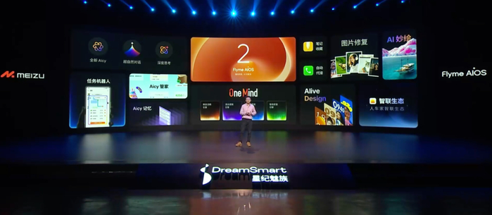 据介绍,FlymeAIOS 2主要特性有:Alive壁纸上线超多个性化玩法,400+项 Alive Design优化,OneMind流光视效引擎加持,动效体验显著提升;全新Aicy接入DeepSeek R1满血版,深度思考三种模式选择;同时星纪魅族首家接入阿里云首个端到端全模态大模型通义千问Qwen-Omni,语音对话体验更自然, 还支持方言随心说,丰富音色可选;任务机器人全面升级;Aicy管家简报随场景智能变化,多种通知样式;AI图库、AI笔记、AI通话助手均有升级。