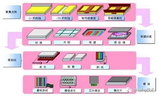 OLED按驱动方式主要分为:被动方式—PMOLED和主动方式—AMOLED。其中PMOLED结构相比AMOLED简单,在工艺流程大体相似,主要是PMOLED没有像AMOLED在屏幕中加装TFT和电容层。如下通过参考PMOLED工艺流程图了解OLED生产的蒸镀环节。