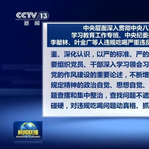 中央纪委办公厅:李献林、叶金广等10人在学习教育期间顶风违纪、违规吃喝,性质极为严重,影响极为恶劣