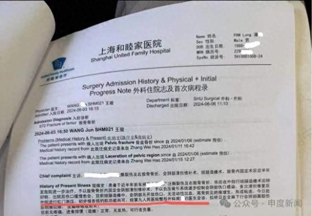 2024年1月11日,潘先生在老挝的一次摩托车骑行中,遭遇交通事故。事故导致潘先生的左股肱骨骨折,屁股出现撕裂伤。在云南进行紧急治疗后,考虑到后续还要进行多项手术,潘先生选择转院至上海和睦家医院。